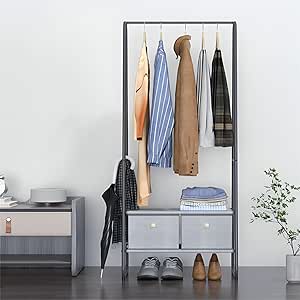 Bamboo Clothes Rack Organizer Household Items Storage Rack Shoe Rack with Iron Stand Eco-Friendly Bamboo Construction for Organizing Clothes Shoes and Ideal for Bedrooms and Entryways.