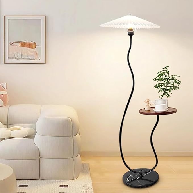 Floor Lamp Standing Light Nordic Floor Lamp With Wood Table Standing Light Marble Base Fabric Lampshade Floor Lamps For Living Room Bedroom lamp stand Standing Lamp 26×155 Centimeter.