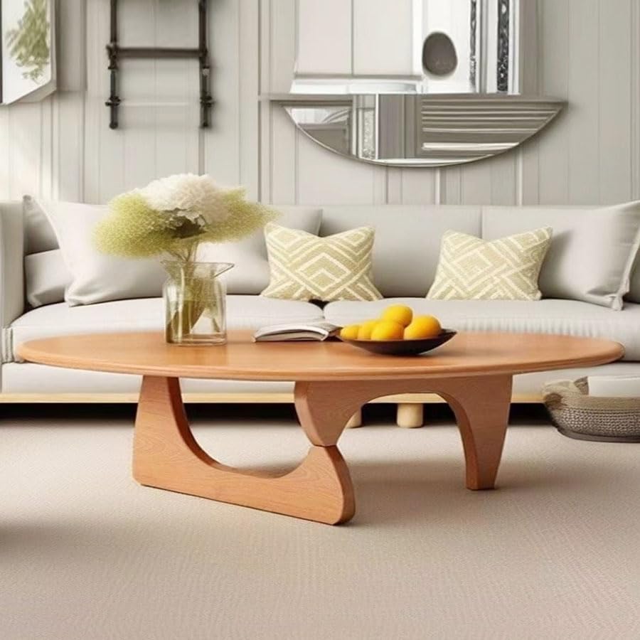Mid Century Modern Abstract Design Coffee Table with Elegant Wood Frame and Small Triangular Side Table Stylish and Functional Accent Piece for Contemporary Living Spaces 83×40 cm.