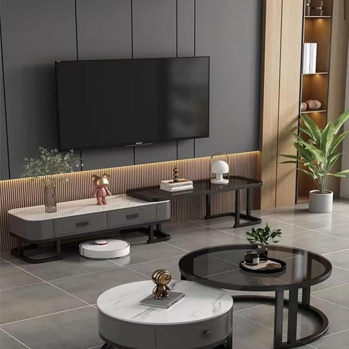 - ★ MODERN DESIGN: Simple and modern design makes this TV shelf easily fits in any style of the room and complements with other furnitures. The entertainment center will be a great decoration for your bedroom, living room, media room, office, hotel etc.