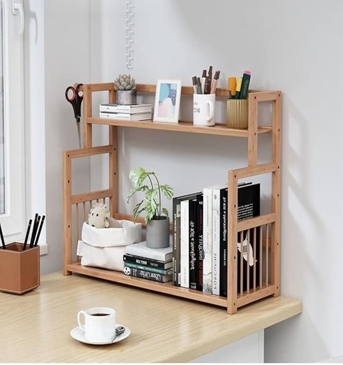 Multi-Tiered Adjustable Bookshelf Office Student Stationery Organizer Magazine Holder Home Sundries Storage Shelf, Ideal for Organizing Books, Files, Stationery 50 x 48 x 23 CM