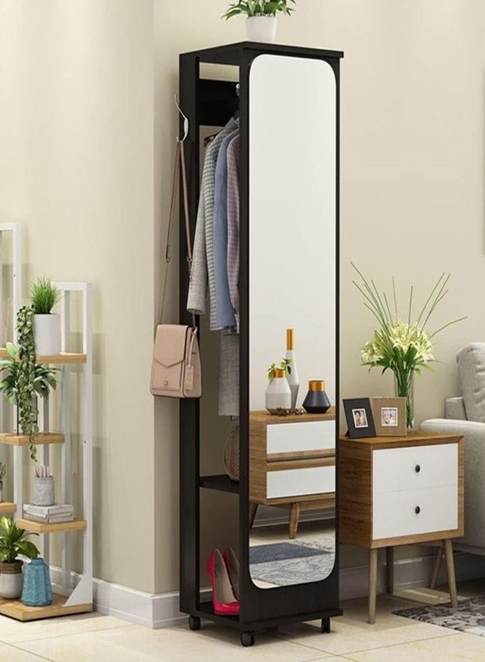 Multifunctional Moveable Dressing Mirror Bedroom Floor Coat and Cap Storage with Wheels