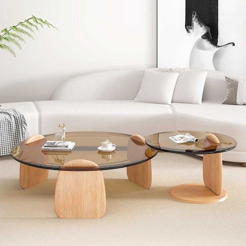 - Elevate your living space with a set of 2 Modern Design Stylish Luxury Round Edges Tempered Glass and Premium Wood Coffee Tables, exuding elegance and sophistication with their sleek and contemporary design.